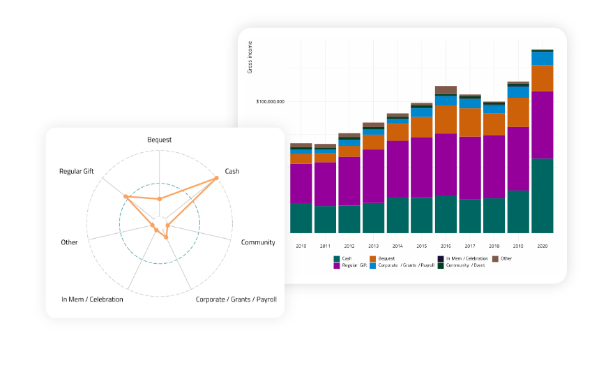 Detailed insights that answer questions around acquisition, retention & growth of single gift donors