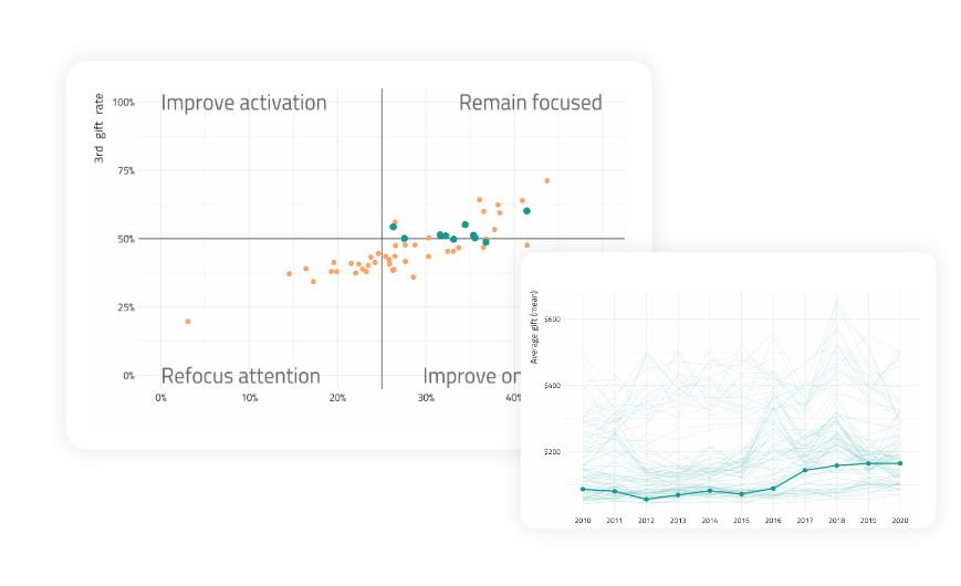 Detailed insights that answer questions around acquisition, retention & growth of peer to peer donors